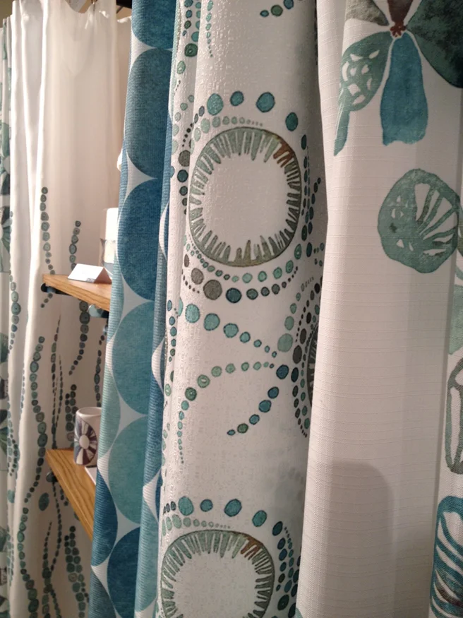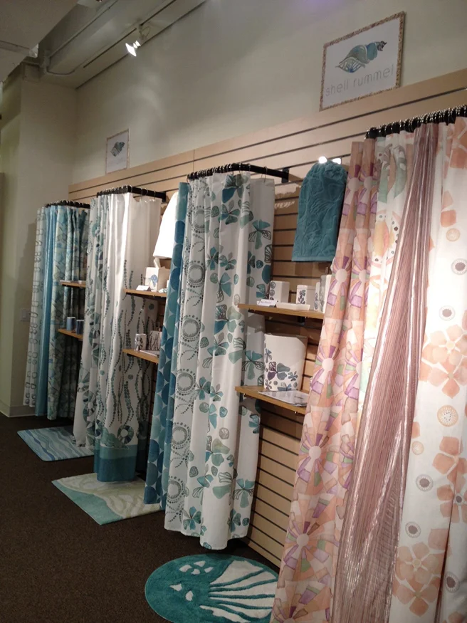 My Bath collection...shower curtains, bath rugs, towels and bath accessories all displayed along the front wall of the showroom... It looked absolutely beautiful and took my breath away. My gratitude to all the kind folks at Bacova, for so warmly welcoming me into their showroom and for presenting my designs in such a striking way. Bed Bath and Beyond has already placed items from my La Mer collection...fingers crossed for continued placement.